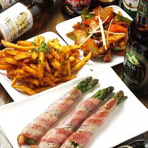 本格カレーとアジアン料理を楽しめる贅沢空間。人気のバターチキンカレーやガパオ、タンドリーチキンなど、多彩なメニューが勢ぞろい!飲み放題付きの宴会コースも充実。仲間と一緒に、香り高いスパイスの世界へ旅しよう。