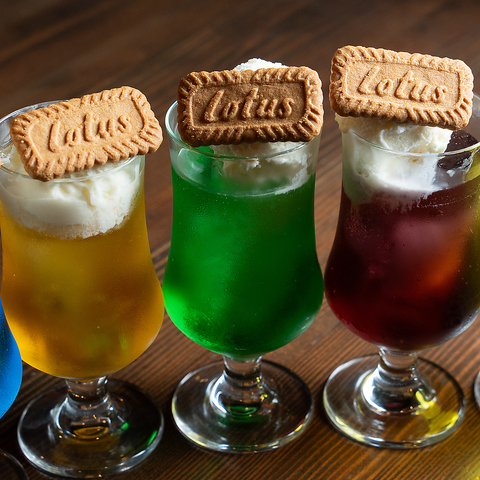 様々なフレーバーが揃ったクリームソーダが、あなたの味覚を刺激します!鮮やかな色合いは、見た目だけでなく、心も踊らせる魅力があります♪甘さと爽快感が絶妙にマッチし、気分をリフレッシュさせてくれる一杯。友達との楽しいひとときにぴったりのドリンクです★