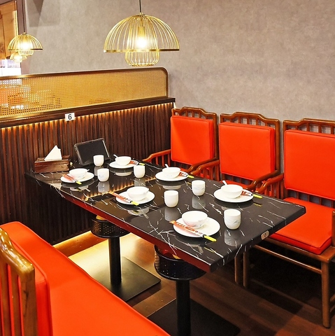 友人との飲み会やご家族のお食事など、大小グループ様でのご利用を想定し、レイアウト変更も可能なテーブル席をメインにご用意しています。落ち着いた色調の内観で、居心地の良さを追求しました。ゆったりと座れる快適な椅子で、長時間の宴会でも疲れにくいのがこだわりです。本格中華とお酒を、快適な空間でお楽しみください。
