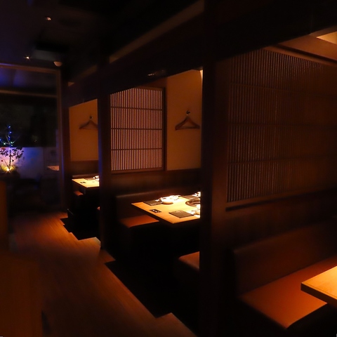 駅から近くお集まりに便利な好立地でありながら、一歩足を踏み入れれば都会の喧騒を忘れる落ち着いた空間が広がります。洗練されたおしゃれな内観は、気心知れた友人との普段のお食事はもちろん、大切な記念日や誕生日のお祝いにも最適です。木目調の温かみがあるテーブル席や、プライベートな個室など、シーンに合わせて選べるお席をご用意♪