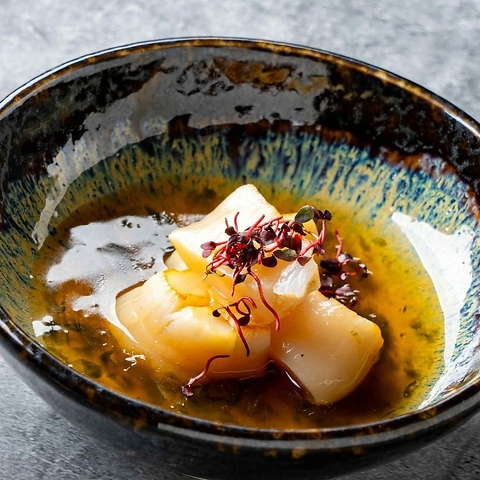 香ばしく焼いた北海道産のホタテとあおさ海苔を含ませた餡と共に
