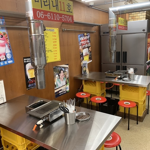 ≪釜山スタイルの店内≫目の前のテーブルでスタッフが丁寧に調理するスタイルをお楽しみいただけます!焼きたての料理が香ばしい煙と共に立ち上がり、食欲をそそる店内♪会話を楽しみながら出来立ての美味しさを味わえるのが魅力です!シェアしやすいメニューが豊富で、ライブ感あふれる食体験をお楽しみください!