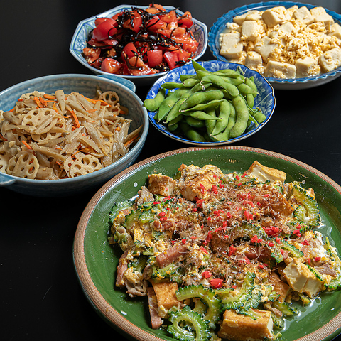 多彩な味わいが楽しめるおばんざいの数々☆色鮮やかなおかずは、目にも嬉しい美しさで、食卓を華やかに彩ります♪ジューシーなローストビーフや、沖縄の陽気を感じるチャンプルーなど、どれも絶品です!さまざまな食材が織りなすハーモニーを堪能しながら、心も体も満たされるひとときをお過ごしください◎