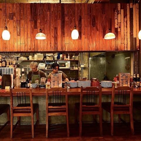 【カウンター席】お一人様やデートに最適なお席です。カウンター席では、自分のペースでゆったりとした時間をお過ごしになれます。お料理やお酒を存分に楽しみながら、スタッフとの会話も弾みます。ぜひご利用ください。
