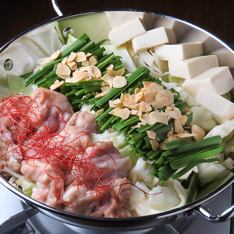 プリプリ食感のもつ鍋は旨味が広がり、最後の麺まで美味しく楽しめる。鰹たたきや自家製つくねもおすすめ!