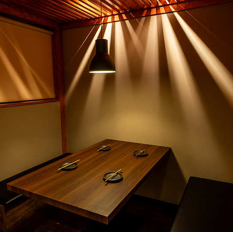 4名様までご着席可能なテーブル席の半個室ご用意しております。接待や記念日のお祝いなど、大切な方のおもてなしにぴったり。周囲を気にせずお過ごしいただける完全個室ですので、お子様連れのご家族にもおすすめです。