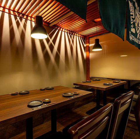 2名様~団体様まで対応可能な落ち着いた和モダン空間デート、接待、企業宴会、記念日など、幅広いシーンでご利用いただけます