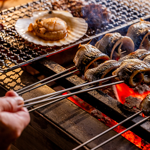 豊洲市場直送のこだわり食材を厳選。原始焼きや炉端焼きで豪快に焼き上げることで、素材の旨みが際立ちます。家族そろってのお食事や接待にぴったり。店内に漂う香ばしい香りと共に、旬の味わいを心ゆくまでご堪能ください。
