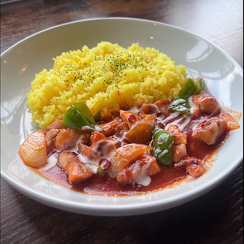 当店オリジナルのタコミートを豪快にご飯に乗せたタコライスです!ロース肉をハンドカットしているので、ゴロゴロした食感をお楽しみいただけます☆スパイシーな味付けなので、ご飯との相性もばっちりです!