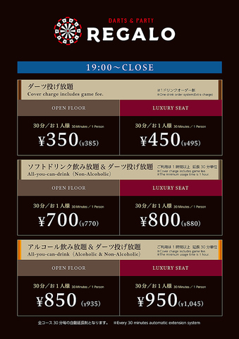 REGALO上野駅前店ではダーツバーでお楽しみ頂ける食後にピッタリなデザートもございます!ご希望のお客様にはメッセージ付ホールケーキや花束もご用意致します!貸切やパーティーなどで皆様の素敵な記念日のお手伝いをいたします♪ご予算で選べるコースも◎各種ご宴会はお気軽に店舗までご相談ください!
