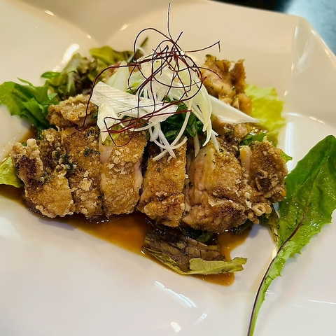 パリッと揚げた鶏もも肉に特製ねぎソースをたっぷり。