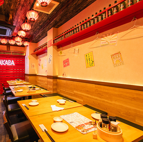 たくさんの料理を並べてシェアできる広々としたテーブル席をご用意しております!友人グループでのご会食、ご家族でのお食事にもぜひご利用ください。お仕事終わりのお食事、同僚とのちょっとした飲み会にもいかがでしょうか?麺類や一品などこだわりの料理とお酒を並べて、素敵な時間をお過ごしください。たくさんのご注文お待ちしております!