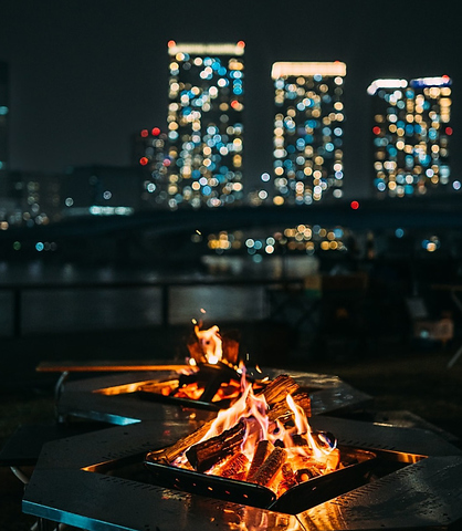 夜景と焚火のシチュエーションは、当店ならではの特別な空間です。
