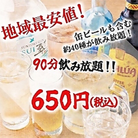 ビール含む約40種類が90分650円で飲み放題!!南森町・天満でとにかく安く飲むならコレ!!120分・180分・・・無制限飲み放題コースもございます◎詳しくはコースページまで!