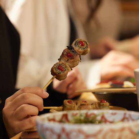 出来立てを召し上がっていただけるよう、串の本数が8本以上であればコースに見立ててタイミングを見てお出しします。“本物の焼き鳥を魅せたい”という想いを込めて塩加減と焼き加減、提供のタイミングにこだわった焼き鳥でおもてなしします。