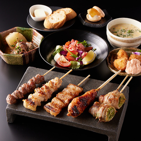 厳選された焼鳥五種をはじめ、一力自慢の黒おでんなど全7品をご堪能いただけます。焼鳥は職人が丁寧に焼き上げた絶品で、ジューシーな旨味が口いっぱいに広がります。さらに、コースの締めくくりには甘さ控えめのデザートもご用意。特別なひとときをお楽しみください。