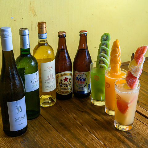 | ソフトドリンク | コーラ/グレープフルーツ/ジンジャーエール/ウーロン茶/さんぴん茶/無糖紅茶/玄米緑茶 |
