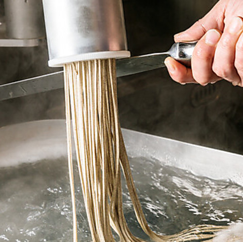 当店の自慢は、希少な国産在来種の玄蕎麦を契約農家から直接仕入れ、指定製粉した蕎麦です。「挽きたて・打ちたて・茹でたて」にこだわり抜いた新鮮な一皿をご提供。あえて機械打ちで仕上げることで、蕎麦本来の風味を最大限に引き出しています。職人の心意気が詰まったこの蕎麦を、ぜひご賞味ください!