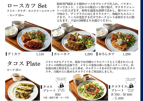 ハンバーグ・カツ・カレー以外に、タコライスが推し!!自家製ソースでバクバクお召し上がりください♪