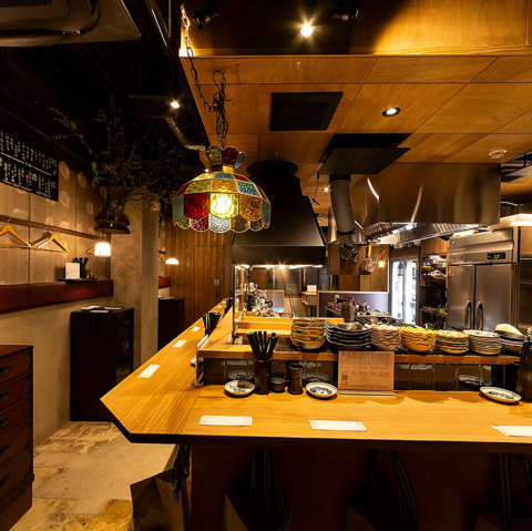 店内は程よい抜け感◎テーブル席からでも、L字カウンターからでも、焼き鳥を焼く様子を楽しむことができライブ感を味わえます。全席から料理の手元が見えることで、店全体が一体となる感覚をお楽しみください♪