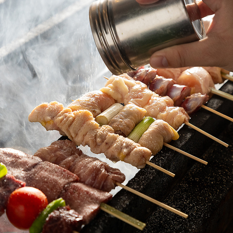 新鮮なものを新鮮なうちに独自の串打ちを行い、炭火で丁寧に1本1本焼き上げる焼鳥は、女性にも嬉しい野菜巻き串など様々な串物をご用意!素材から、焼き方からこだわり続けた極上の焼鳥♪ 中でも「ハツ」「つくね」「サガリ」がおすすめです。気軽に立ち寄って、当店自慢の焼き鳥をご堪能ください。