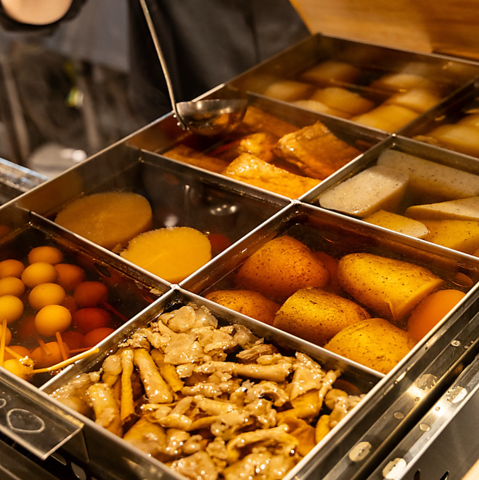 焼き鳥に加え、おでんも当店の自慢!時間をかけてじっくりと煮込んだおだしを使用しており、お酒と合わせると、より一層豊かな味わいを感じられます。