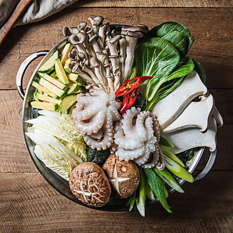 テナガダコとマルチョウとエビの鍋 ・ナッコプセ中 2人前…4,200円(税込) ・ナッコプセ大 4人前…6,900円(税込)※タコ2倍