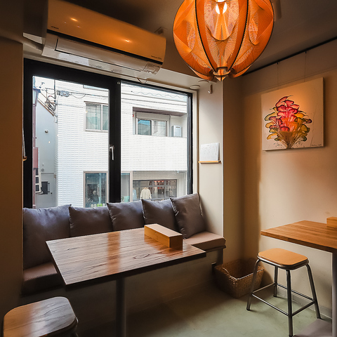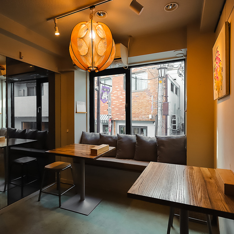 ≪グループ利用に最適なゆったりテーブル席♪≫2名様テーブル席×4◆最大8名様まで着席可能なテーブル席は、親しい仲間やご家族とのグループ利用に最適です◎落ち着いた空間で、当店の自慢のお肉料理と創作料理を心ゆくまでお楽しみいただけます。友人同士の飲み会や女子会、各種宴会など、様々なシーンでご利用ください。