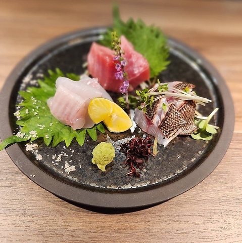 店主おすすめのお刺身三点盛りです!旬の魚をお召し上がりください!