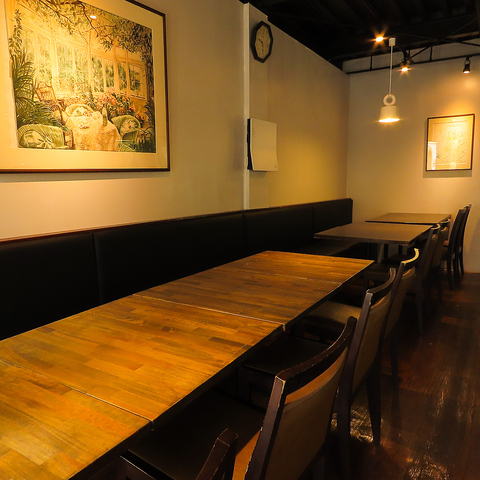 木の温もりとスパイスの香りが漂う、落ち着いた雰囲気の店内。カウンター席からテーブル席までゆったり配置され、少人数の飲み会から最大30名までの貸切宴会にも対応可能です。女子会や会社のご宴会、記念日利用にもぴったり。異国情緒あふれる空間で、スパイス料理とお酒を囲んで特別な時間をお楽しみください。