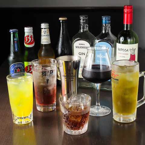 多彩なドリンクが勢ぞろい!各種ビールやサワー、カクテル、ワインまで豊富に楽しめます。