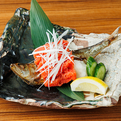 旬の魚や大ぶりの天然海老、焼き野菜などをじっくり丁寧に焼き上げ、旨味をぎゅっと閉じ込めました。シンプルだからこそ素材の味が引き立ち、焼きたてならではの香ばしさと旨味を存分に楽しめます。徹底した温度管理で絶品に仕上げた当店自慢の囲炉裏焼きをぜひご賞味ください!(写真は大トロいわし)