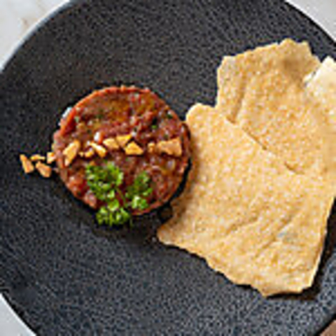 タルタルステーキの起源と言われる、生馬肉のタルタルステーキです。