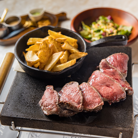 300度に熱したホットストーンで、塊肉をお好きな焼き加減でお楽しみいただけます☆