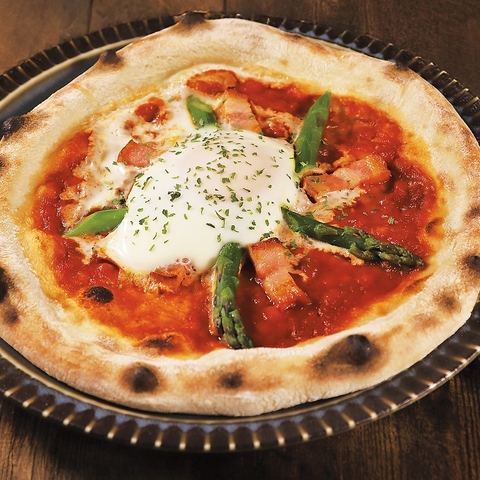 高火力で焼かれた生地は、パリッとした食感が特徴。とろけるモッツァレラと新鮮なトマトソースが絶妙に絡み合い、口の中で広がる風味のハーモニーが楽しめます。バジルの香りがアクセントとなり、見た目にも美しい一品。