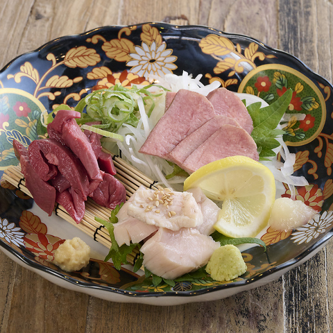 当店の自慢の『肉刺し』牛タンやレバーは勿論、希少部位のチレやヒレ等他店ではご用意出来ない商品ご用意(船橋/津田沼/市川/西船橋/居酒屋/個室/喫煙可/焼き鳥/肉刺し/宴会/歓送迎会/大衆/大衆酒場/送別会/歓迎会/歓送迎会/忘年会/新年会/飲み会/カウンター)