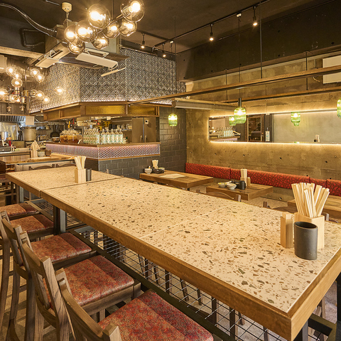 ライブ感溢れる大テーブル席◎17時からのお一人様でのちょい飲みやデートなどのシーンにおすすめです