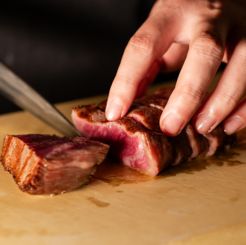 調理は素材の持ち味を最大限活かすために、仕入れ状況や旬に合わせて、選び抜いた部位を絶妙な火入れで仕上げております。お酒との相性も抜群で、赤ワインはもちろん、日本酒やビールとのペアリングもおすすめです。その日の仕入れによって変わる「一期一会のステーキ」をぜひご堪能ください。