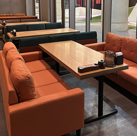 木目を基調とした落ち着いた内観は、ショッピングの喧騒を忘れさせてくれる安らぎの空間です。清潔感のあるテーブル席で、ご家族やご友人との会話を心ゆくまでお楽しみいただけます。鉄板の上でジュウジュウと音を立てるハンバーグは、視覚と聴覚から食欲を刺激し、心温まる団欒のひとときを演出します。