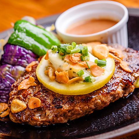 厳選素材を丁寧に下処理し、肉の旨みを凝縮させた自慢のハンバーグをアツアツの鉄板でご提供!ナイフを入れた瞬間に溢れ出すジューシーな肉汁と豊かな食感は、まさに感動体験です。特製のデミグラスソースが、肉の味わいをさらに引き立てます。お買い物の後の最高の締めくくりとして、ぜひお召し上がりください。