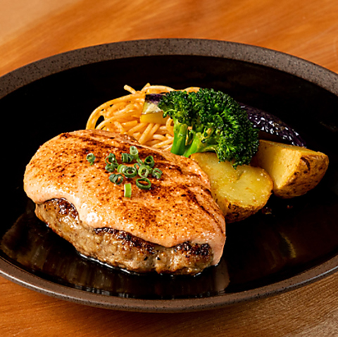 濃厚なゴルゴンゾーラチーズとキノコのクリームを、ジューシーなお肉で包み込んだ贅沢なハンバーグ。ひと口ごとにチーズのコクとキノコの旨味が広がり、肉汁と絶妙に絡み合います。特別な日の一皿にもぴったりの、味わい深い逸品です。