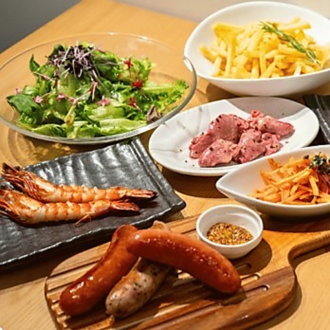 有頭海老や牡蠣、鶏レバーのコンフィ等、静岡店限定メニューもご用意しております。メインのハンバーグと一緒にお楽しみください。