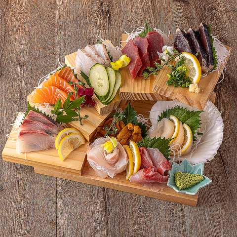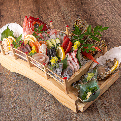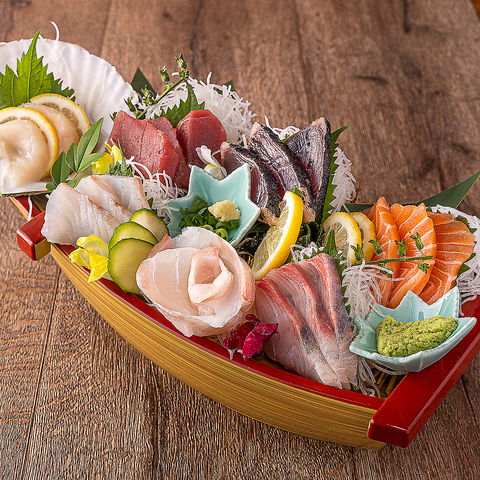 鮮度抜群!豪華舟盛りで海鮮を贅沢に堪能。旬の魚介を彩り豊かに盛り付けた自慢の一品。宴会や貸切に最適。