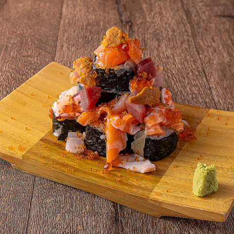 濃厚なウニと輝くいくらを惜しみなく盛り付けた、贅沢なこぼれ寿司。器からあふれる豪華な見た目は写真映え抜群で、特別なひとときを華やかに彩ります。
