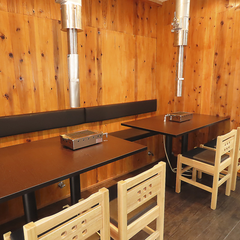 テーブル席は4名様までご利用いただける焼肉店では、ご家族でのご来店や、女子会などにもご活用いただけます。また、店内はゆったりとお過ごしいただけるようにしております。ご友人やご職場の仲間との飲みに、ぜひ当店をご賞味ください。