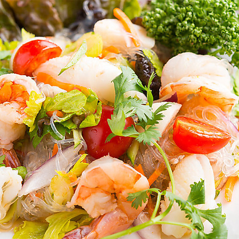 当店では、歴30年以上、シェフが腕を振るう本格的なタイ料理をご提供しております。お客様がいつでも新鮮な気持ちで料理と向き合あえるように、50種類を超えるメニューをご用意。定番から珍しい逸品まで、お客様がご来店の度に満足し、また来たいと思っていただけるよう精進いたしております。本場タイの味と香りを、心ゆくまでご堪能ください。