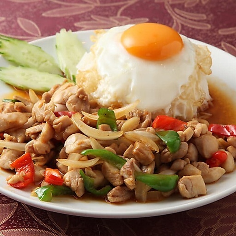 香ばしいバジルとひき肉をピリ辛に炒め、半熟卵を添えたタイの定番人気メニュー