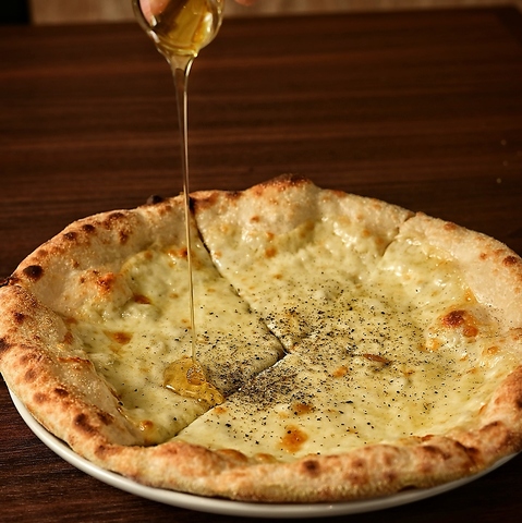 北海道産チーズを贅沢に四種類使用。最後ははちみつをかけて完成です。とろけるチーズのハーモニーが口いっぱいに広がる、チーズ好きにはたまらない一枚です。ワインとの相性も抜群!