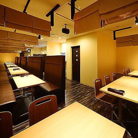 落ち着いた雰囲気が自慢の店内。各種宴会など大小問わず集まりにぴったり!多数のプライベート空間を完備しており、ソファー席での宴会も可能です♪ゆっくり寛ぎながら、美味しい料理とともに素敵なお時間をお過ごしください。最大50名様の貸切予約可能。各種宴会大歓迎です。お気軽にお問い合わせください。