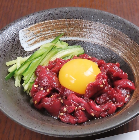 日本3大馬刺しの1つであり馬刺しの名産地、福島県会津から直送される新鮮な馬刺しをご用意しております。赤身が持つ濃厚な旨味と、たてがみのコクのある甘みが会津馬刺しの特徴です。さっぱりとしながらも深い味わいは、まさにご馳走です。伝統の食べ方である、辛味噌を添えてご提供いたします。当店にお越しの際はぜひお試しくださいませ。